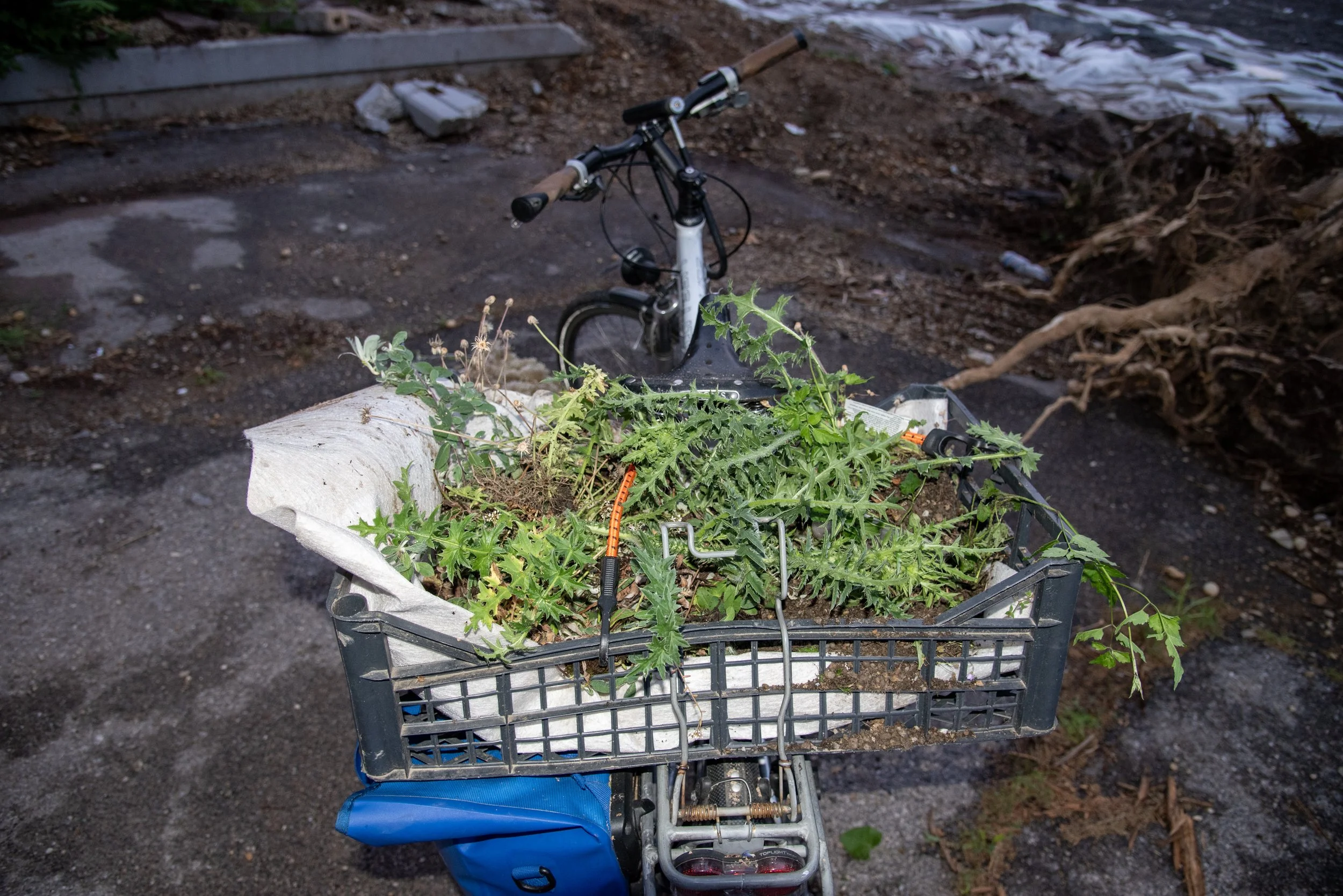 In Kooperation mit der Nutzung des Nordwestbahnhofs durch die interdisziplinäre Gruppe Tracing Spaces entsteht eine temporäre Schutzzone für das Überleben bahnhofsbrachentypischer Tier- und Pflanzenarten während der Baustellenphase des Areals. Die vorgelagerten Beete – gerettet von der Klimabiennale 2024 und der Bahnhofsbrache – fungieren als Zuchtstation: Hier werden Samen gesammelt, vermehrt und für die Wiederansiedlung im zukünftigen Stadtentwicklungsgebiet vorbereitet. Gleichzeitig bieten die Pflanztröge, gespeist auch aus Beständen des Nordwestbahnhofs, einen wichtigen Rückzugsraum für Insekten und Kleintiere – insbesondere dann, wenn bestehende Habitate verschwinden. Als mobile Trittsteinbiotope gedacht, strukturieren sie das karge Baufeld als Netzwerk temporärer Rettungsinseln und schaffen ökologische Kontinuität im Zustand des Übergangs.